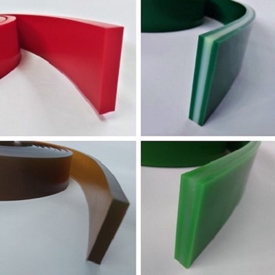 Comercializamos as tiras de PU no formato de 50 x 9,5 mm com perfil reto e 25 x 5 mm perfil chanfrado em V. Confira as diferentes durezas e tamanho do rolo.