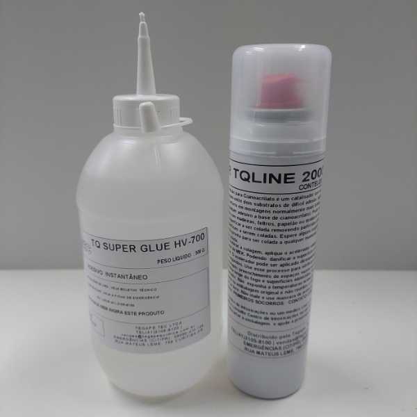 A cola instantânea para montagem de peneira TQ Superglue HV, também chamada de supercola, é um adesivo que se polimeriza rapidamente em contato com o ar.
