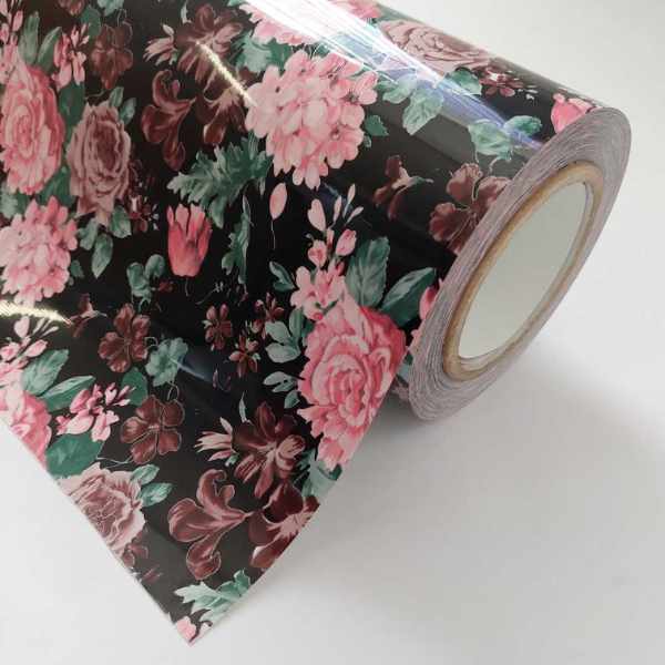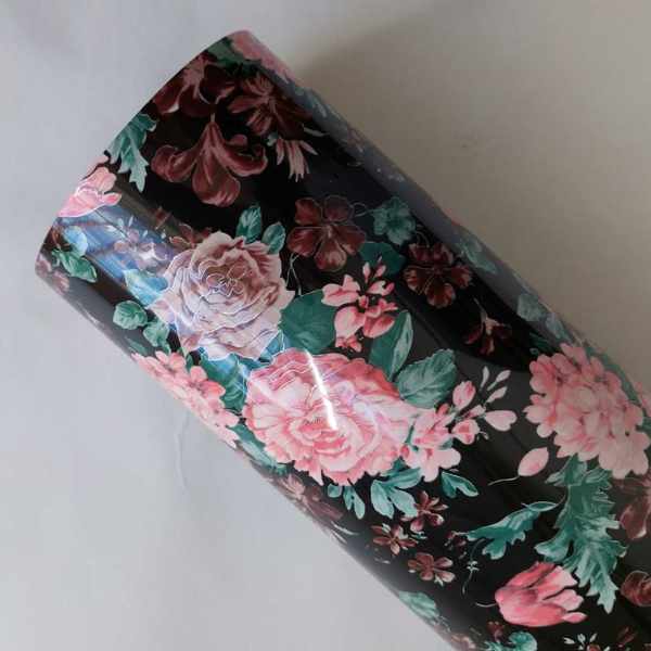 Este filme já vem com uma estampa floral e depois de recortado proporciona um efeito diferenciado.