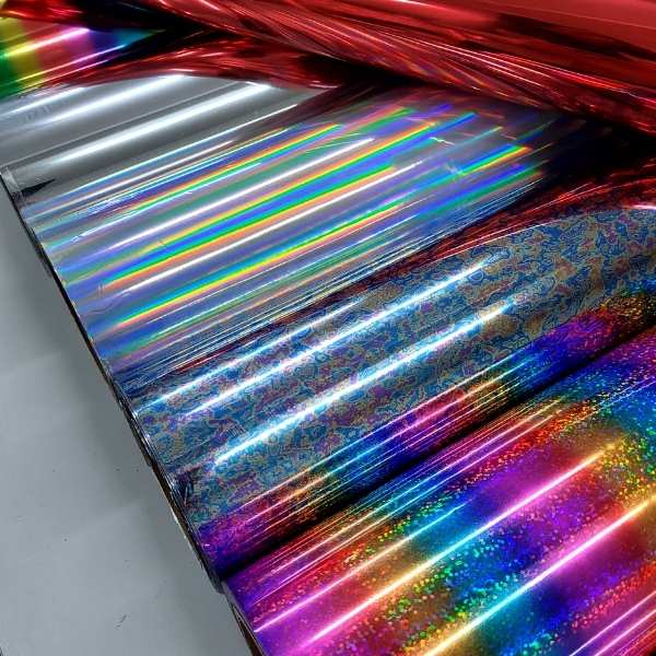 O processo envolve a transferência de uma camada fina de folha metálica ou brilhante para a superfície do tecido, criando um efeito de brilho intenso.