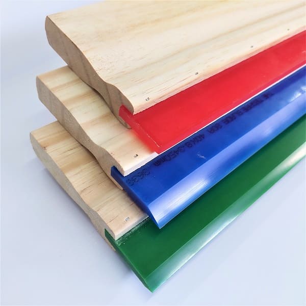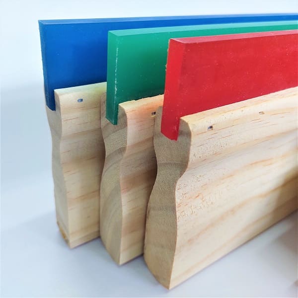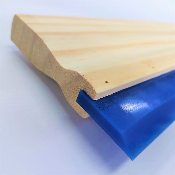 O rodo serigrafia é elaborado com cabo de madeira e  tiras de poliuretano com variadas durezas.