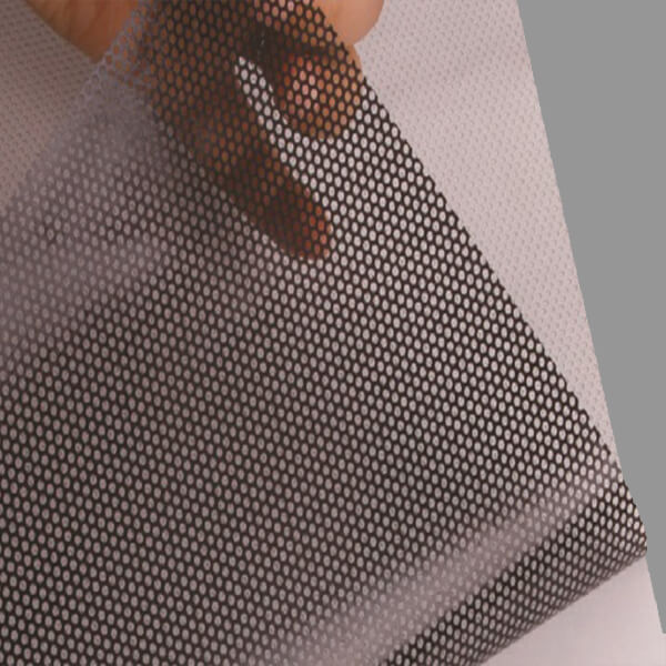 Seu fundo preto impede a passagem de luz e permite uma melhor visualização da imagem impressa, mas seus furos (de 1,6 mm) permitem a visibilidade e iluminação necessárias aos ambientes.